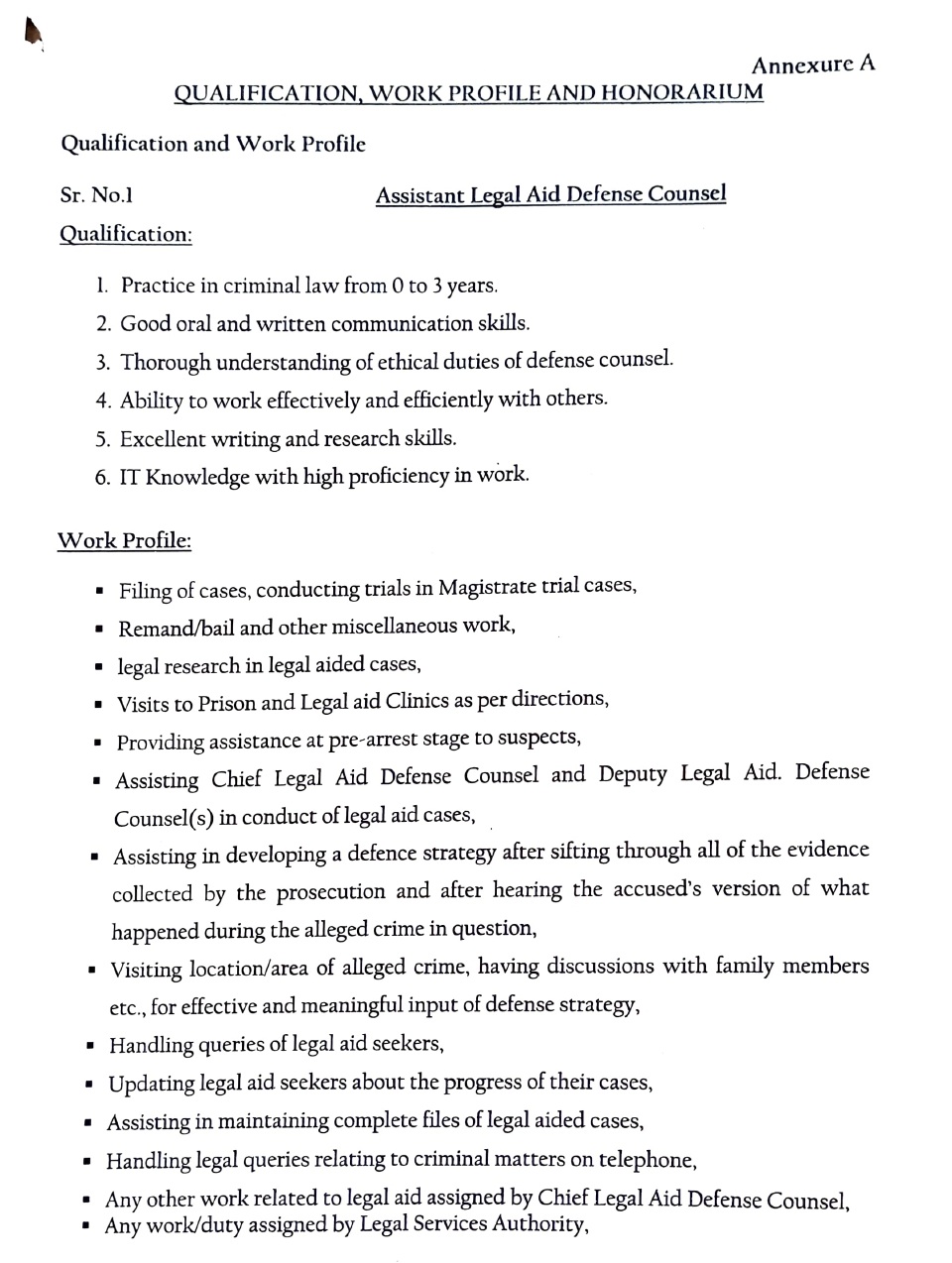 QUALIFICATION, WORK PROFILE AND HONORARIUM | ||||||||||||