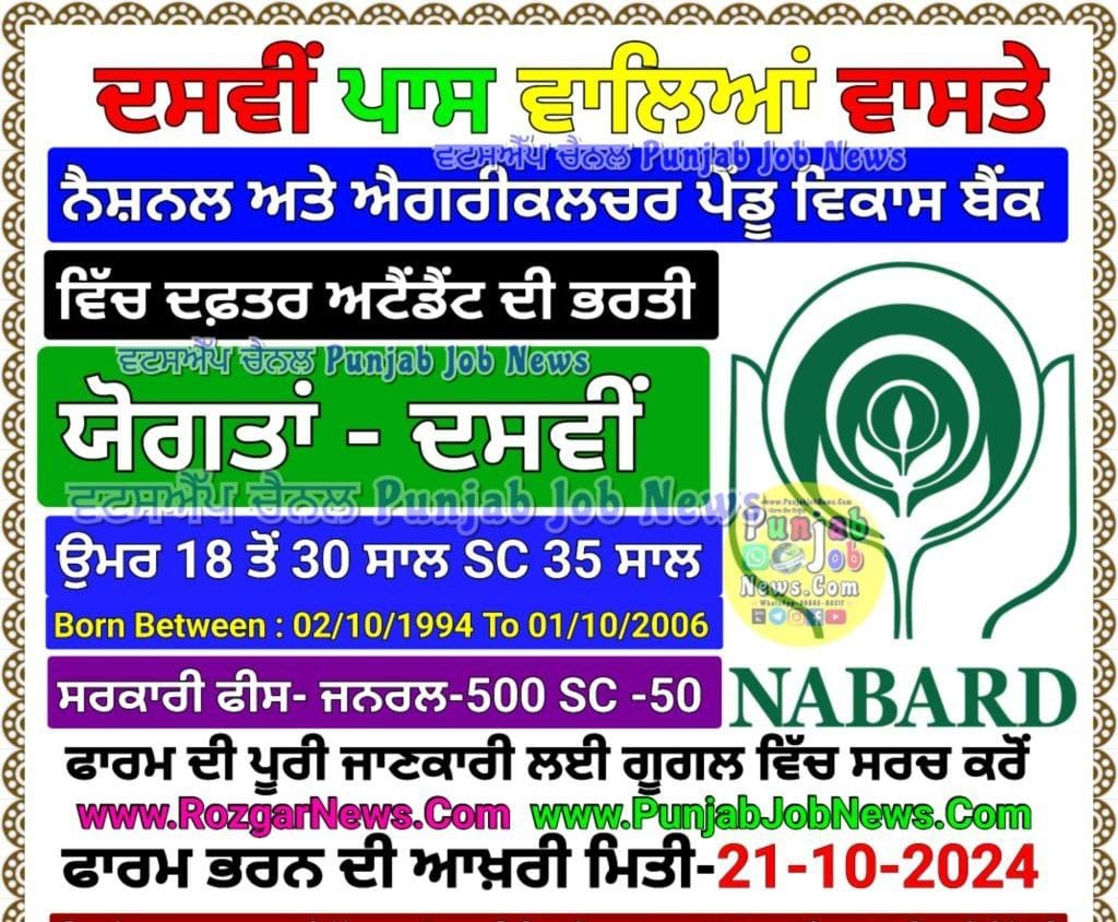 National Bank for Agriculture and Rural Development (NABARD)Office Attendant (Group-C) Recruitment 2024Advt. No. : 03 /Office Attendant/2024-25www.RozgarNews.Com