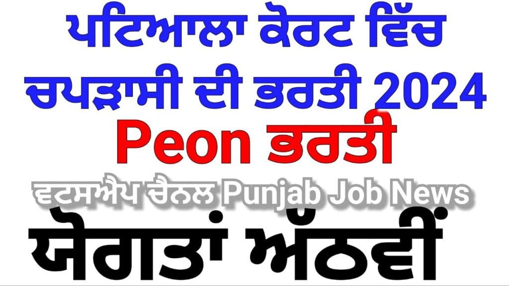 District and Sessions Judge, Patiala (Punjab)Patiala Court Peon (33 Post) Recruitment 2024Patiala Court Peon Recruitment 2024 Short Details