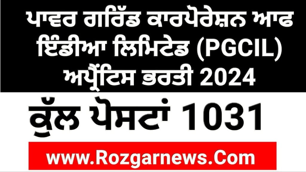 PGCIL 1031 Apprentice Vacancy Online FormPower Grid Corporation of India Limited (PGCIL)PGCIL Apprentice Recruitment 2024Short Details Of Advt Notificationwww.RozgarNews.Com