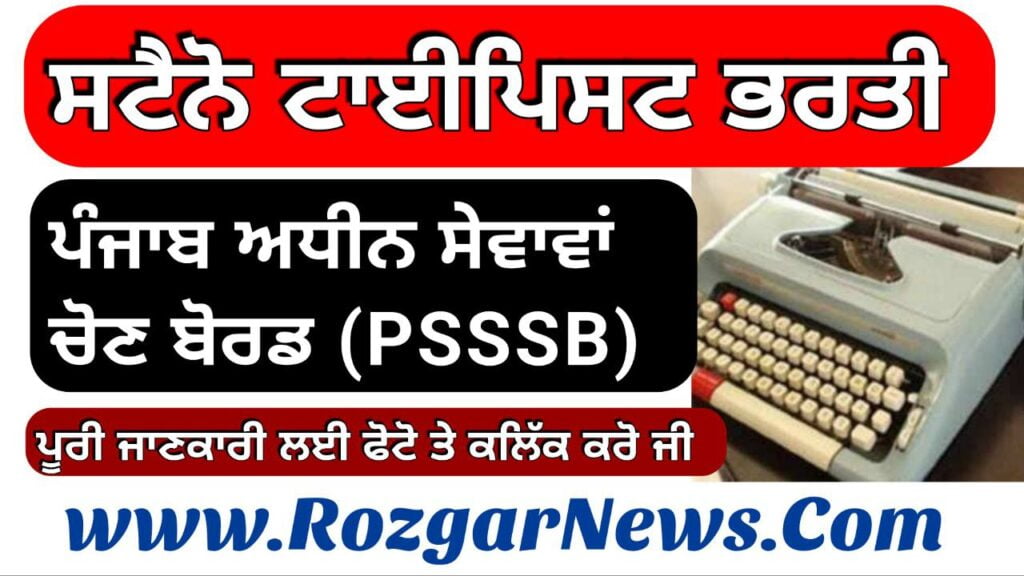 Punjab Subordinate Services Selection Board (PSSSB)PSSSB Steno Typist Recruitment 2024Advt No. : 11/2024 Short Details of Notification |
