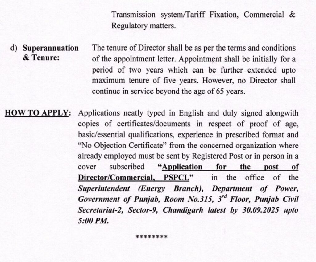 Punjab PSPCL DIRECTOR/COMMERCIAL POST 2025