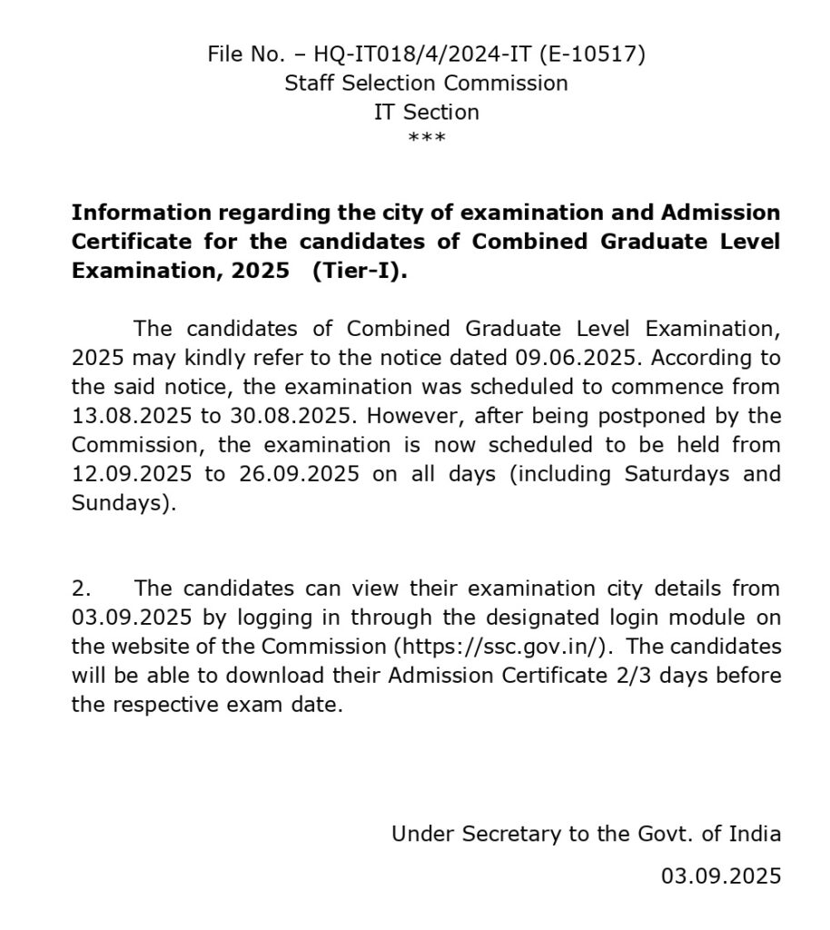 Staff Selection Commission (SSC)Combined Graduate Level Examination 2025SSC Combined Graduate Level Tier-I Exam Admit Card OutSSC CGL 2025 Short Details of Notificationwww.RozgarNews.Com