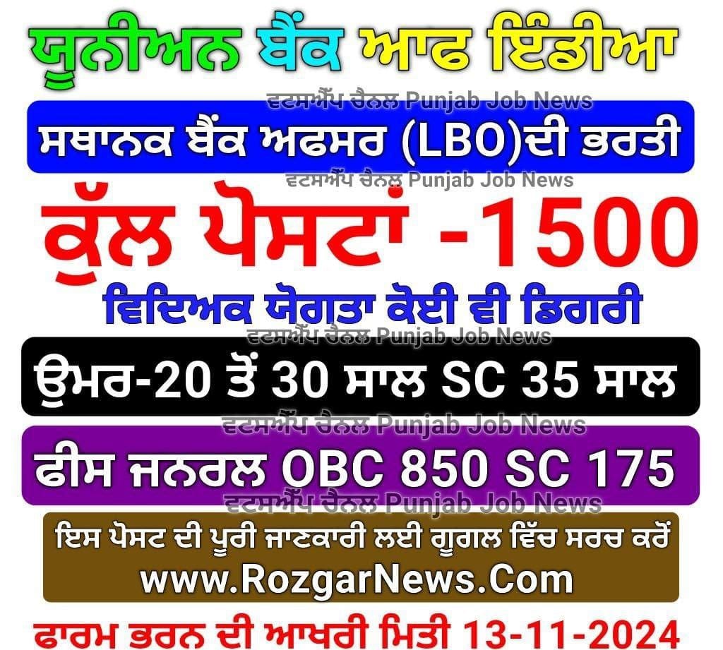 | Local Bank Officer (LBO) (Equivalent to PO) | 1500 | - Any Graduation Degree,